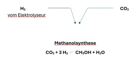 Der im Elektrolyseur freigesetzte Wasserstoffs wird mit dem CO2 zu Methanol synthetisiert (Bild 5). Derart erzeugte synthetische Brennstoffe werden auch Sub-Zero-Methanol bezeichnet.
